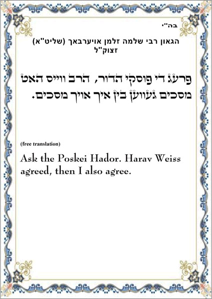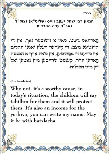 This revolutionary Shemirah Bidrachim Program was first introduced in Israel with support from the leading Rabbinical authorities in Israel. Here are their endorsements as relayed to Rabbi Goldberg on Rosh Chodesh Adar 5748 after each read the "Shemirah Bidrachim Program".